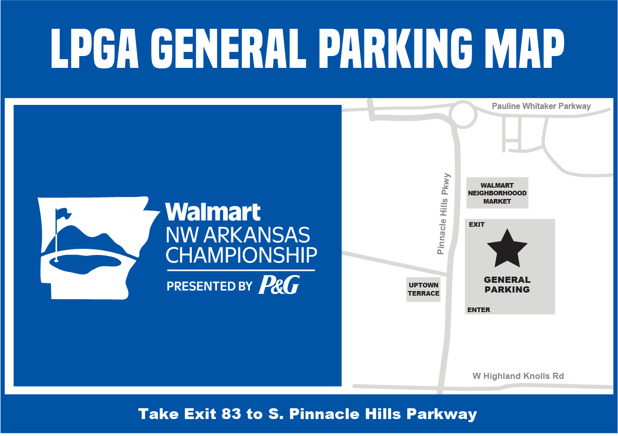 General Parking Friday-Sunday is located off of Exit 83, behind the Walmart Neighborhood Market (4501 S Pinnacle Hills Pkwy).